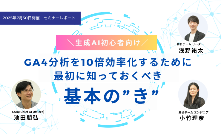 2024年7月9日に「GA4徹底ガイド!ビジネス成果を最大化するGA4設定と分析手法の秘訣」というテーマでウェビナーを開催しました。ご参加いただいた皆様、誠にありがとうございました!