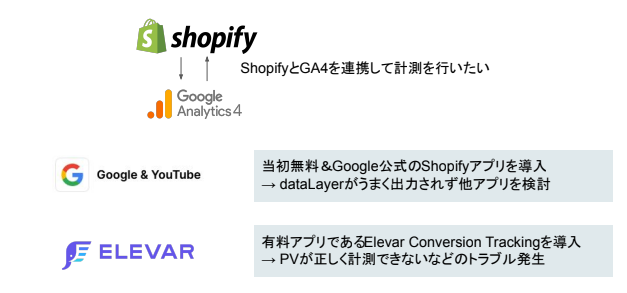 GA4に関する2つ目の失敗例は、ShopifyなどのECサイトでeコマースイベントが適切に計測されないケースです。