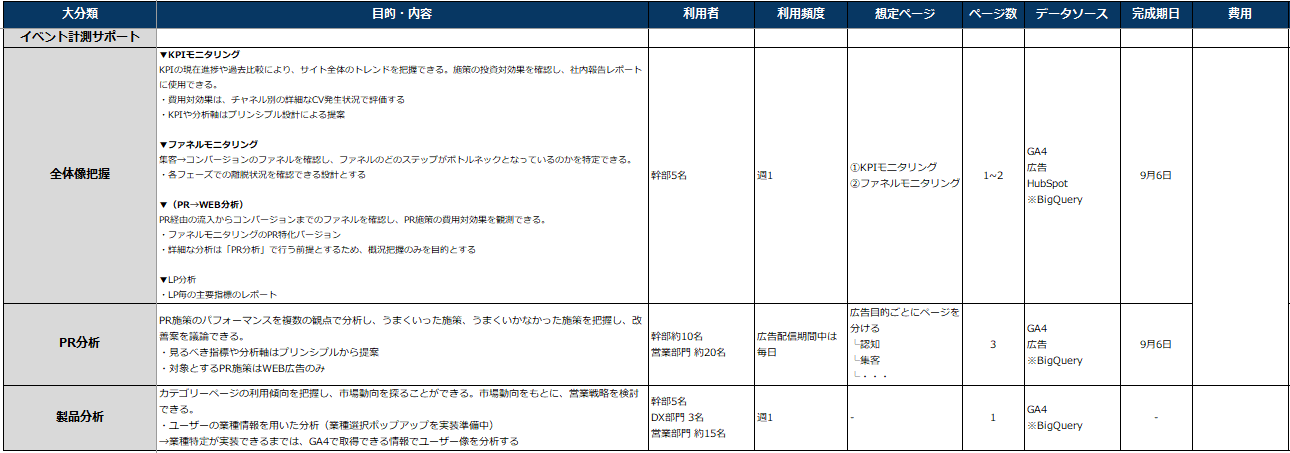STEP 1. 要件定義を実現するために、BigQueryの実装項目の整理やテーブル設計を行います。