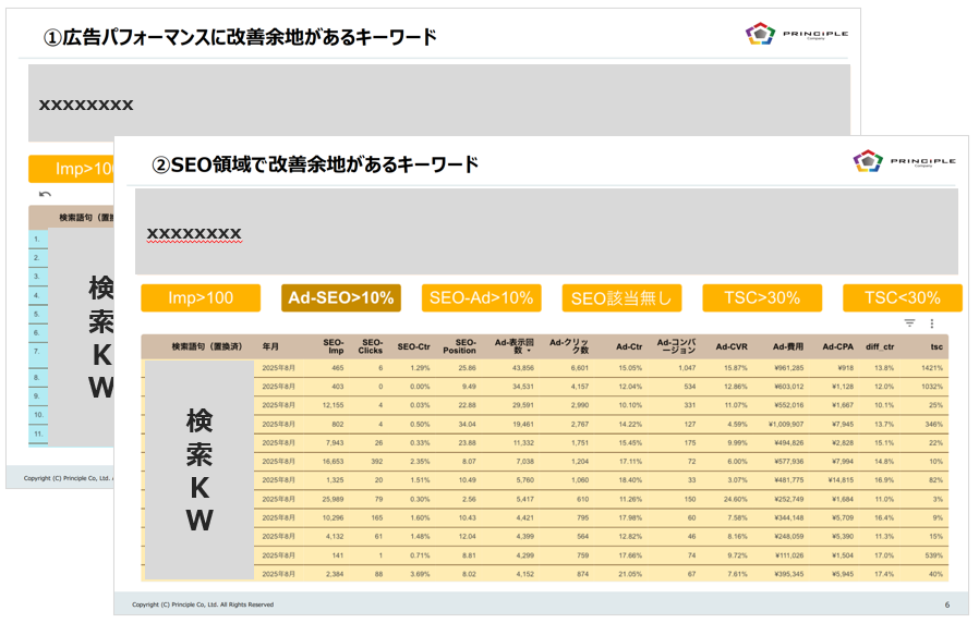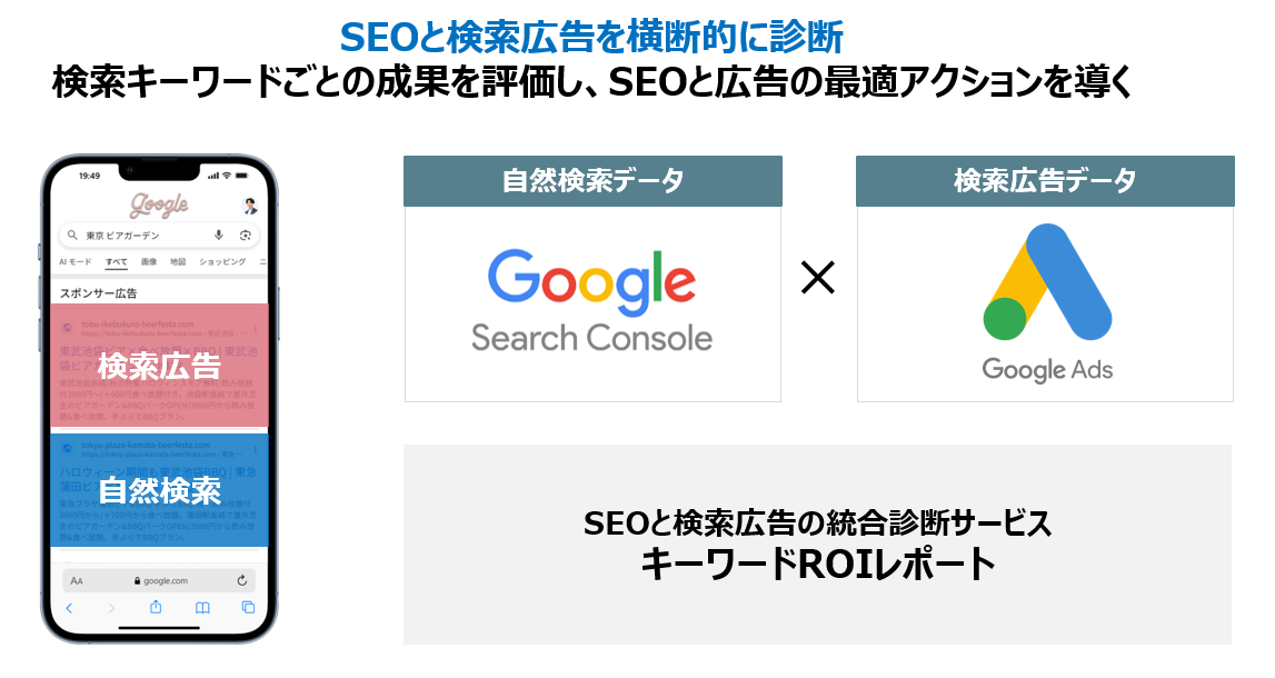 ・SEOと検索広告を横断的に診断し、キーワード単位の成果を総合的にレポートします。